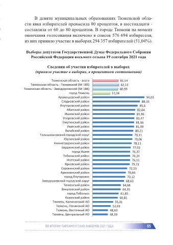 64 СБОРНИК АНАЛИТИЧЕСКИХ И СТАТИСТИЧЕСКИХ МАТЕРИАЛОВ ПО ИТОГАМ ПАРЛАМЕНТСКИХ ВЫБОРОВ 2021 ГОДА 65