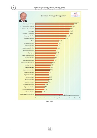 X Результаты голосования в Тюменской области на выборах Президента Российской Федерации (4 марта 2012 года) Рис. 10.2 102